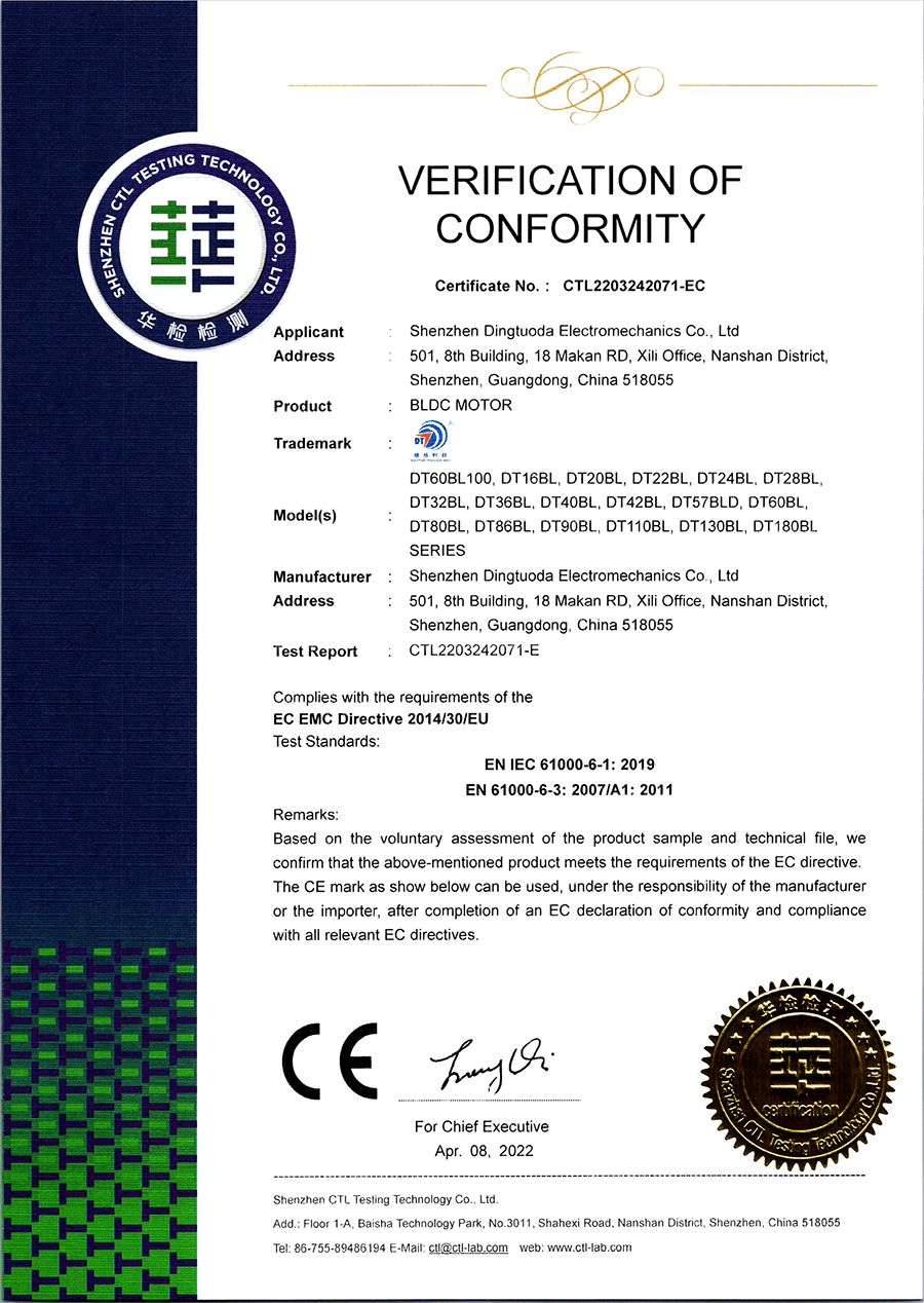 首页->产品认证->无刷电机CE认证证书