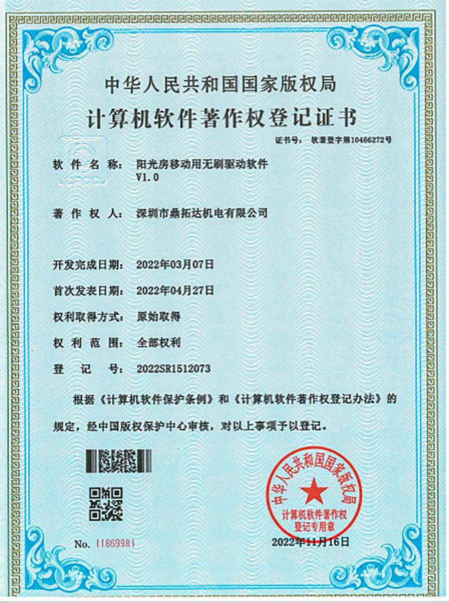 首页->产品认证->阳光房移动用无刷驱动软件V1.0